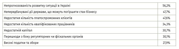 Бізнес вказує і на негативні фактори, які заважають розвитку підприємницької діяльності: непрогнозованість дій держави щодо бізнесу, посилення тиску силовиків та контрольних органів, відсутність доступу до фінансового ресурсу.