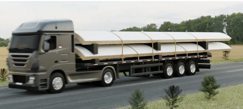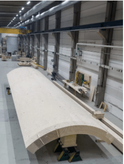 Массивные секции LVL производятся на заводе, а затем отправляются на место установки турбины для сборки на месте. (Фото предоставлено Modvion)