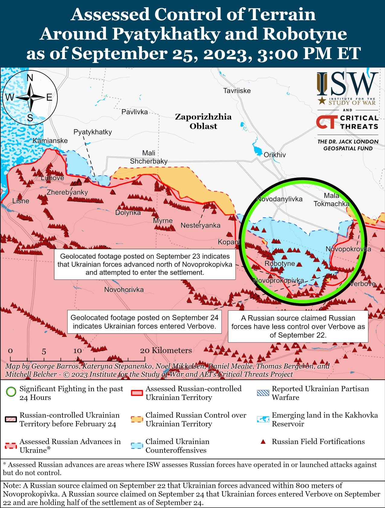 - Тактическая ситуация в Вербовом остается неясной на фоне продолжающихся украинских наступательных действий на западе Запорожской области 25 сентября.
