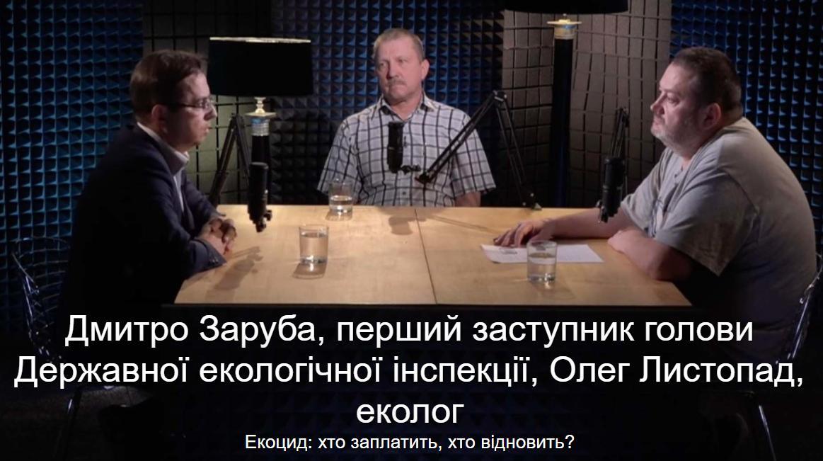 Д.З.: – Урядом нашої країни визначено Державну екологічну інспекцію як орган, який фіксує події, пов’язані зі збройною агресією, які впливають на навколишнє середовище, і безпосередньо розраховує збитки. Міністерством захисту довкілля в минулому році були затверджені наказами 7 методик, за якими власне і відбувається розрахунок цих збитків. Це і питання по забрудненню земель, це й забруднення водних об’єктів. Це знищення лісового фонду України. Це питання повітря тощо. І от якраз Державна екологічна інспекція використовує ці методики безпосередньо для розрахунку збитків. І та цифра, яка була названа міністром захисту довкілля, це цифра попередня, звичайно, бо, на жаль, військова агресія продовжується. І наші інспектори не всюди можуть дістатися. Є окуповані території, є зони бойових дій.