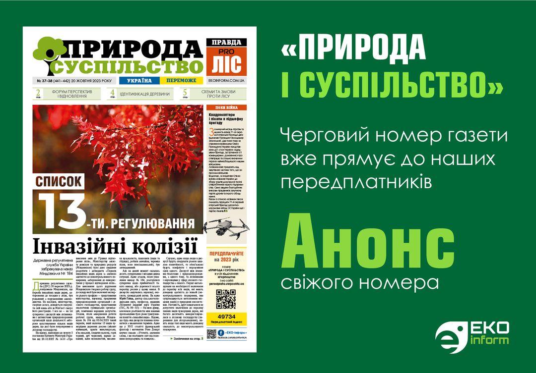 Передплачуйте газету «ПРИРОДА І СУСПІЛЬСТВО» на 2023 рік у відділеннях «Укрпошти» і на сайті peredplata.ukrposhta.ua