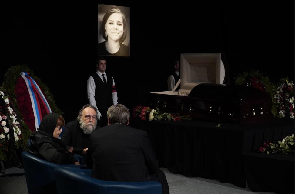 Российский националист Александр Дугин 23 августа 2022 года в Москве на похоронах своей дочери Дарьи Дугиной, погибшей в результате взрыва автомобиля. (Евгений Бугубаев/Anadolu Agency/Getty Images)