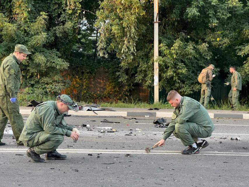 Российские власти расследуют место происшествия после взрыва автомобиля, в результате которого в 2022 году погибла Дугина. (Следственный комитет России/Anadolu Agency/Getty Images)