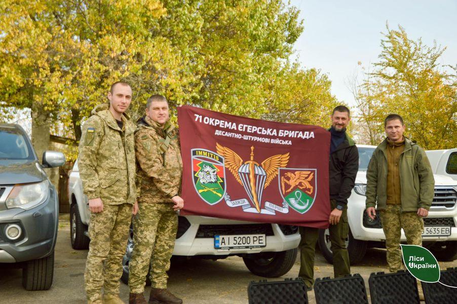 Відтак, всі потреби військових, про які у вересні домовилось керівництво ДП «Ліси України» та командування 71-шої окремої єгерської бригади ЗСУ, закриті. Загалом за три етапи представники Спілки воїнів-лісівників передали на фронт 56 квадрокоптерів, 40 приладів нічного бачення, зарядні станції, акумулятори та багато інших приладів та амуніції.Кошти на закупівлі надані співробітниками ДП «Ліси України». Тисячі лісівників долучились до ініціативи допомогти 71-ій бригаді. Спілка воїнів-лісівників організовувала закупівлю та доставляла вантаж на фронт.