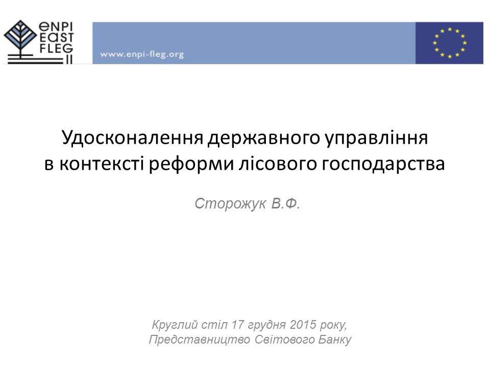 17 грудня 2015 року в представництві Світового Банку в рамках програми «FLEG -II» відбувся круглий стіл, присвячений питанням використання міжнародного досвіду в процесі реформування лісового сектору України.