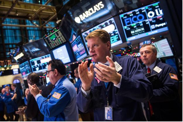 Трейдеры в зале Нью-Йоркской фондовой биржи. ЭНДРЮ БЕРТОН / GETTY IMAGES