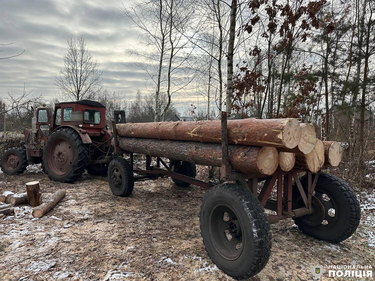 Крім того, на незаконній порубці лісу поліцейські викрили місцевого жителя у лісовому масиві поблизу села Великі Озера. Із місця події вилучили трактор з причепом і 16 свіжозрізаних дерев сосни та знаряддя злочину.