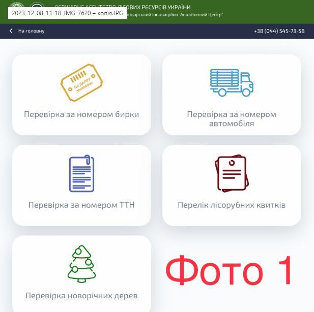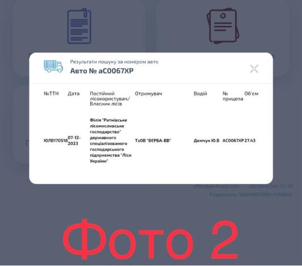 2. Вам відразу пропонує перевірити ліс: а) за номером бирки, б) за номером автомобіля, в) за номером ТТН (фото 1).