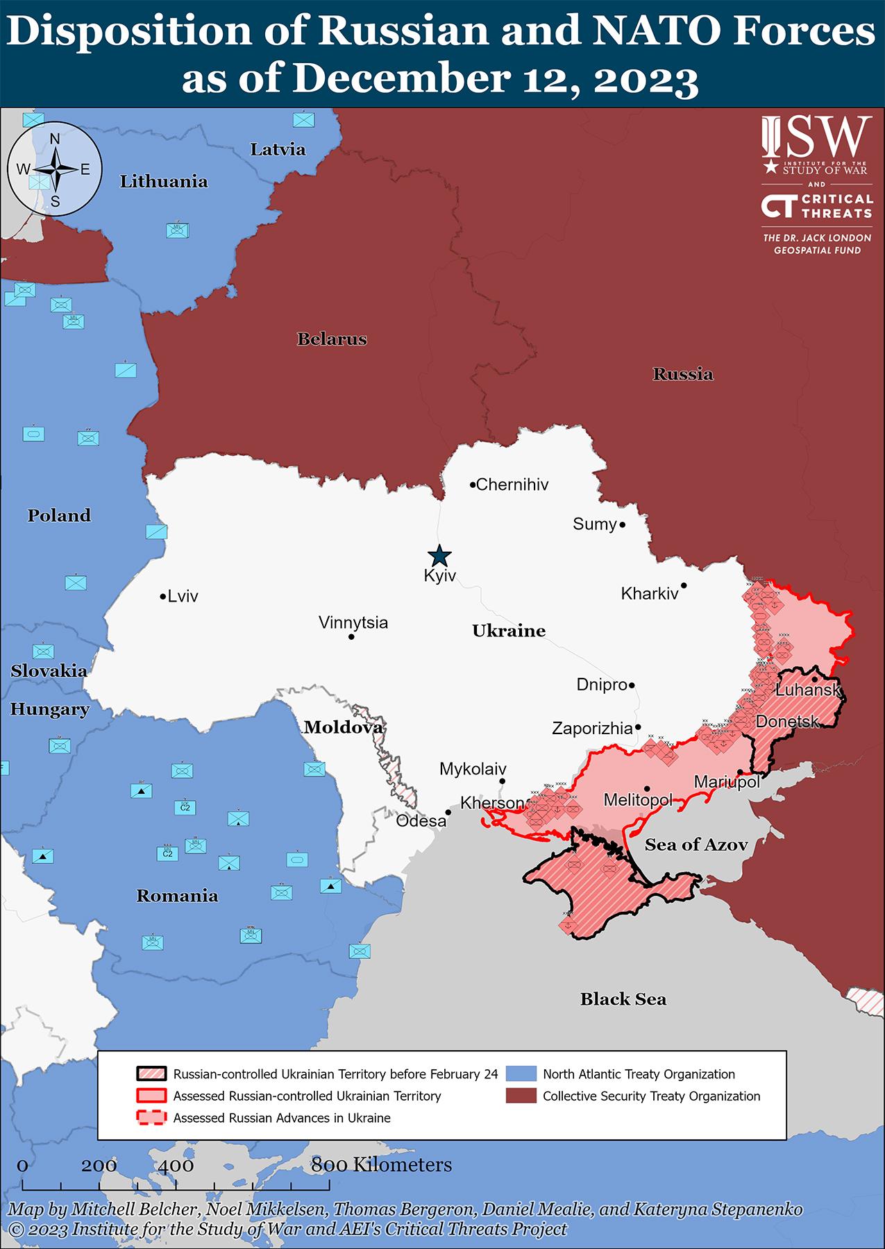 Поражение Украины от первоначального российского вторжения в 2022 году сохранило восточные границы Польши, Словакии, Венгрии и Румынии свободными от угрозы крупного наземного нападения России. Освобождение Украиной западной части Херсонской области позволило ближайшим российским войскам находиться на расстоянии около 220 миль и большой реки от румынской границы. Большая часть российских войск находится более чем в 350 милях от Румынии и еще дальше от Польши, Словакии и Венгрии. Война полностью оккупировала почти полмиллиона российских военнослужащих — почти всю наземную боевую мощь России. Россияне неуклонно завершают свои давние усилия по обеспечению контроля над Белоруссией и размещению там российских войск, но Россия по-прежнему не представляет обычной наземной угрозы для НАТО сегодня, потому что ее вооруженные силы привязаны к Украине.