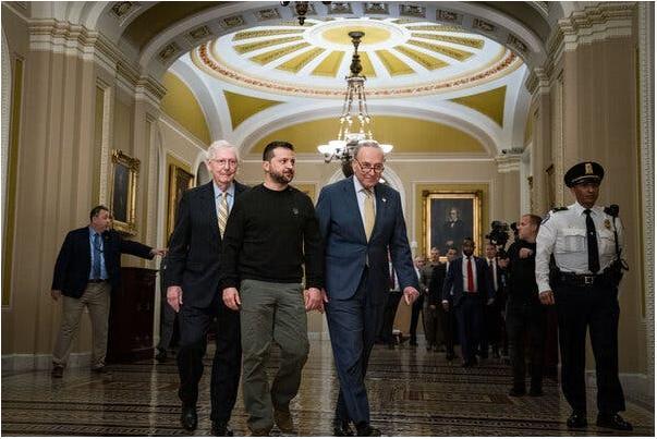 Президент Украины Владимир Зеленский в Капитолии в этом месяце. Представитель администрации Байдена заявил, что даже если Конгресс в конечном итоге достигнет соглашения об отправке дополнительной помощи Украине, альтернативный источник финансирования все равно отчаянно необходим. Фото…Кент Нисимура для «Нью-Йорк Таймс»