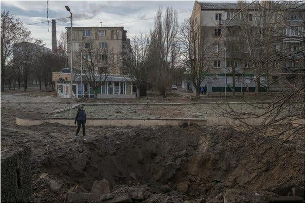Воронка, оставленная ракетным ударом в Херсоне, в этом месяце. Фото…МаурисиоЛимадля The New York Times