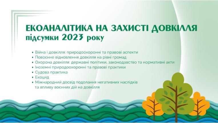 Протягом року юристи та екологи ЕПЛ підготували понад 50 аналітичних документів різного спрямування. Переважно вони стосуються питань відновлення довкілля й притягнення країни-агресора до відповідальності. Це – 7 тематичних блоків.