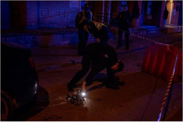 Осмотр обломков, предположительно от ракеты или беспилотника, в мае в Киеве. Фото…Николь Тунг для «Нью-Йорк Таймс»