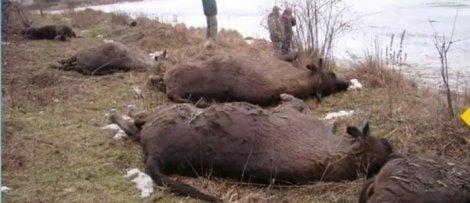Не менее 17 зубров, входящего в Красную книгу вымирающего вида, были убиты охотниками-браконьерами вечером 30 января возле села Требухи Литинского района Винницкой области. Часть стада зубров была расстреляна, часть – загнана на озеро и утонула подо льдом. Жители села подозревают в причастности к убийству животных местных депутатов.