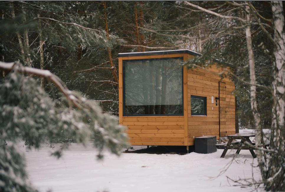Усього на новій локації посеред дерев розташовані сім “кебінів”, які можна орендувати для відпочинку на природі. За площею (15 кв. м) такий будиночок схожий на невеликий готельний номер, і в ньому можуть розміститися до двох людей.