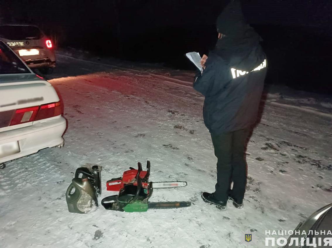 Ввечері 22 січня під час проведення рейду на території Срібнянської громади поліцейські звернули увагу на автомобіль «ГАЗ», припаркований на узбіччі дороги. Вантажівка була заповнена деревиною, об’ємом 8 кубічних метрів. Поблизу стояв легковий автомобіль, у багажному відділені якого поліцейські виявили дві бензопили та каністри з мастилом. Також під час огляду ділянки лісосмуги правоохоронці виявили дев’ять свіжих пнів.