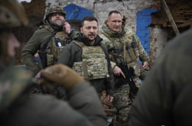 Президент Украины Владимир Зеленский во время своего визита в Запорожскую область, место ожесточенных боев с российскими войсками в Украине, 4 февраля 2024 г. Пресс-служба Президента Украины через АП.
