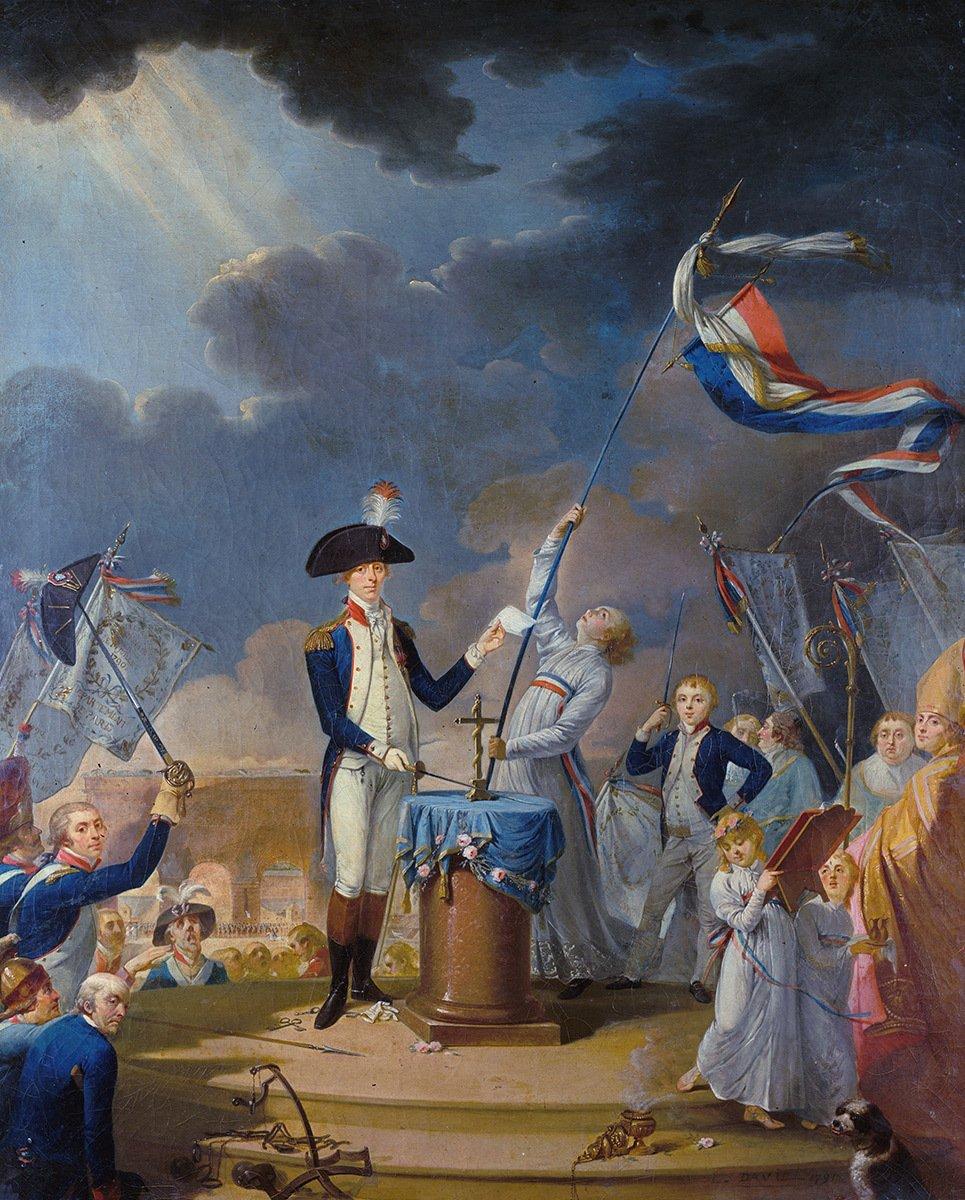 Присяга Ла Файетта на Празднике федерации. Талейран (справа, в митре) принимает присягу рядом с генералом, фото: Paris Musées / Pixel8tor / Wikimedia