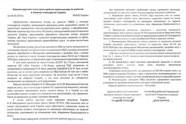 Рішення круглого столу щодо проблем оцінки впливу на довкілля в лісовому господарстві України