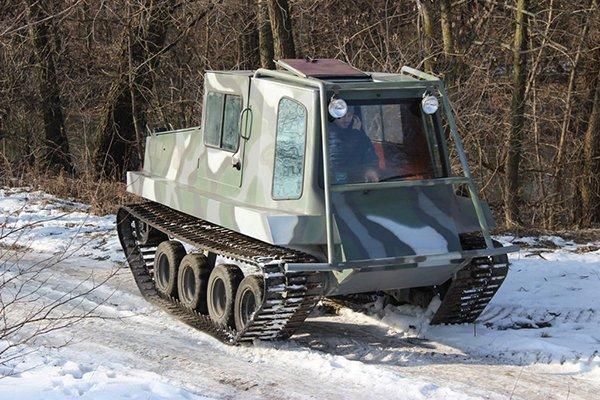 Машина легко долає засніжені ділянки, заболочений грунт, дрібнолісся, зарості очерету. Рівень шуму – що в салоні, що зовні – невеликий, набагато менше, ніж можна було б очікувати від гусеничного транспортера масою 2,5 т.