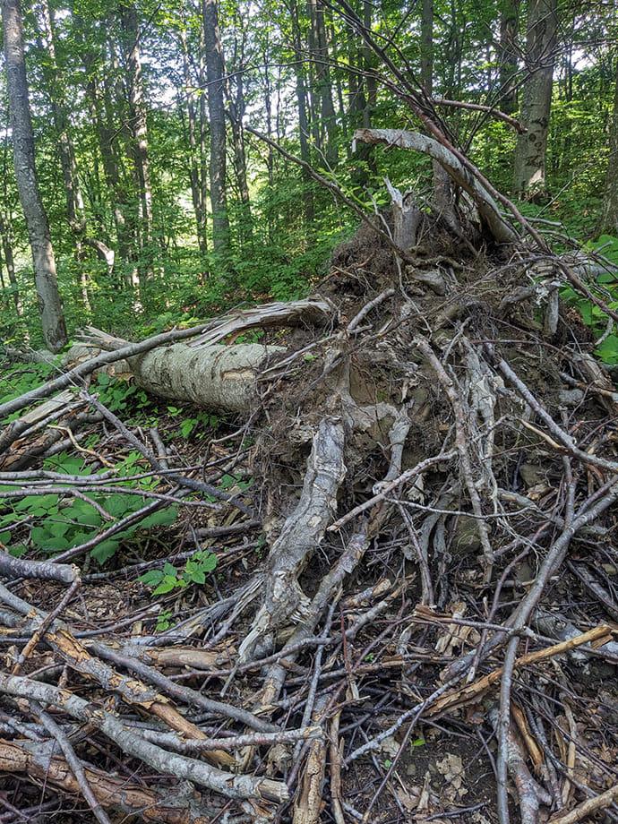 Виявилося, що шлях через заказник справді “оновили” – за допомогою важкої техніки розширили приблизно до семи метрів. При цьому дерева на узбіччях подекуди навіть не рубали, а просто вивертали з корінням.