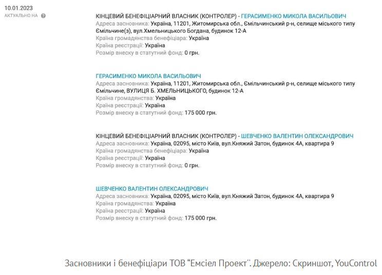 ТОВ “Емсіел Проект” було зареєстроване за два місяці до “реформи” – у жовтні 2018 року – і має фірму-“близнюка” ТОВ “Емсіел Еко-Проект”. Голова і засновник товариства – Микола Герасименко. Чоловік з такими з ПІБ фігурує в базі “Миротворець” як бойовик терористичної організації “ДНР”. Утім, зважаючи на розповсюдженість імені та прізвища, вірогідність того, що це одна й та сама особа – невисока.