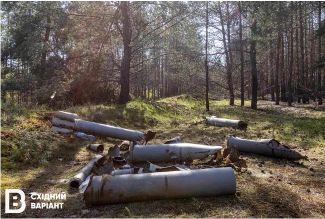 Уламки ракет, знайдені на території Лиманського лісу. Фото: Східний Варіант