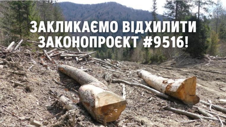 Представників природоохоронного руху з приводу неприпустимості прийняття проєкту закону за номером 9516 «Про внесення змін до деяких законодавчих актів України щодо ефективного управління лісами на основі ведення лісового господарства на принципах наближеного до природи лісівництва, адаптованого до кліматичних змін, збереження біорізноманіття в лісах».