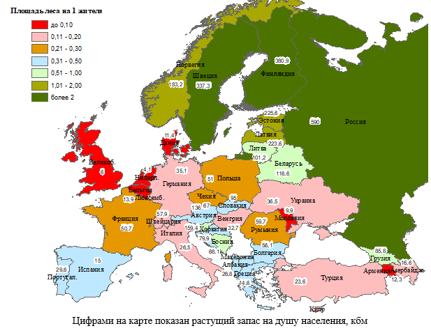 - в большинстве стран из эксплуатации исключено менее 5% леса. Исключение составили постсоветские и горные европейские страны, – Испания, Италия, Австрия, Сербия;
