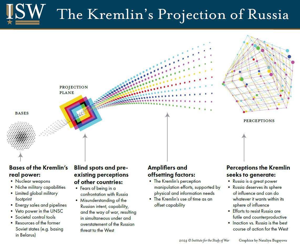 Сосредоточенность Кремля на деградации процесса принятия решений в США не является оппортунистической, новой или ограниченной Украиной. Манипулирование восприятием является ключевым элементом стратегии Путина – способом достижения целей, выходящих за пределы российской власти. В 2020 году ISW оценил, что центром тяжести Путина становится его способность формировать восприятие других и проецировать образ сильной России, основанной на ограниченной реальной силе. [29] Мы писали: «Кремль часто генерирует выгоды, основанные на восприятии, не изменяя возможностей России. Эти успехи возникают на стыке усилий Кремля по манипулированию восприятием и присущих Западу слепых пятен в отношении намерений и возможностей России. Сведение к минимуму восприятия Западом собственных рычагов влияния на Россию является ключевым компонентом этих усилий». [30]