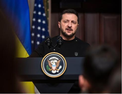 Президент Украины Владимир Зеленский выступает перед журналистами во время пресс-конференции в Вашингтоне 12 декабря. (Билл О’Лири/TheWashingtonPost)