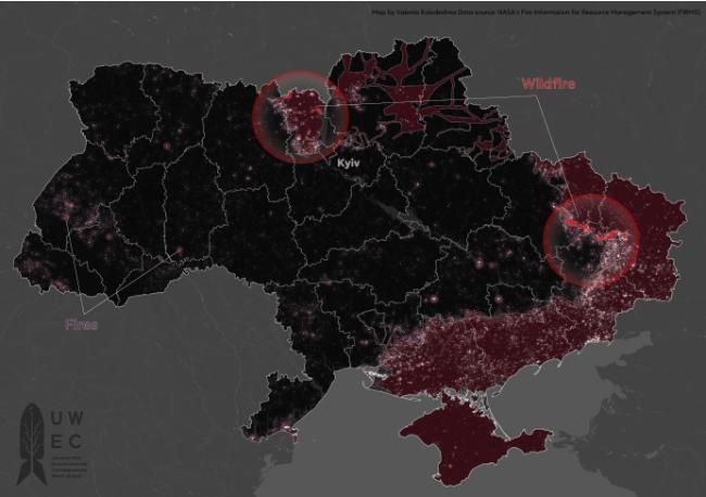 К сожалению, во время полномасштабного вторжения России в Украину в 2022 году после перехода боевых действий к позиционному противостоянию, как применение российскими войсками тактики “выжженной земли” привели к значительному увеличению потерь природных экосистем от пожаров, поскольку интенсивность обстрелов на единицу площади значительно возросла.