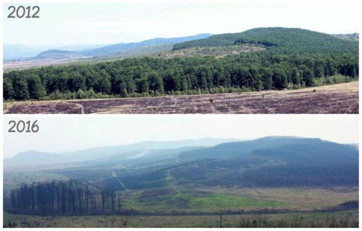 На этих фотоснимках – дубовый пралес возле села Русское Поле в 2012-м году и те жалкие остатки, что остались от него сейчас. Вместо буйнозеленого лесного массива – опустошенная поляна с пеньками, пишет Depo.Закарпатье со ссылкой на Тячев.