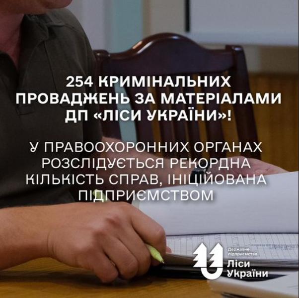 254 кримінальних проваджень за матеріалами ДП «Ліси України»