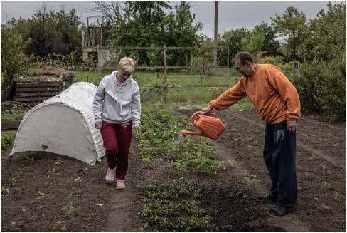 У жителей меньше гарантий. После того, как в 2022 году Украина вернула себе село Старый Салтов, 63-летний Михаил Воинов и его 54-летняя жена Елена Воинова отремонтировали крышу, заткнули осколочные повреждения и заменили разбитые окна. На любовно ухоженном заднем дворе пение птиц смешивалось с грохотом артиллерии.
