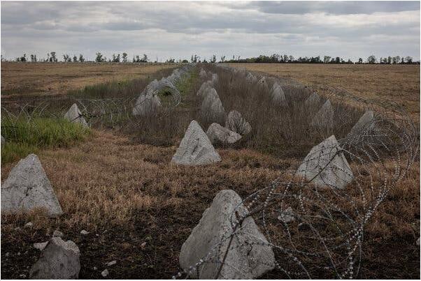 Противотанковая оборона, известная как «зубы дракона», возле Волчанска, который подвергается атаке российских войск в Харьковской области на северо-востоке Украины.