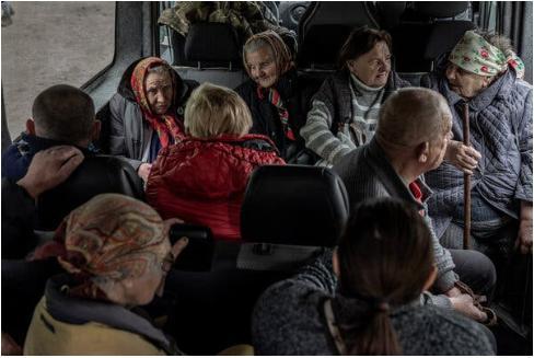 Жителей Волчанска и других окрестных сел, подвергшихся нападению, перевозят из эвакуационного пункта в областной центр Харьков.