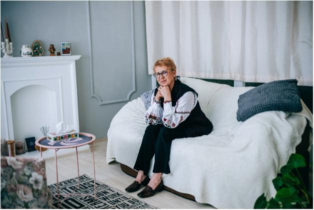 Ветеран войны Людмила Менюк, ныне психолог, на дому, где проводит бесплатные занятия для солдат.Фотограф: Юлия Кочетова/Bloomberg