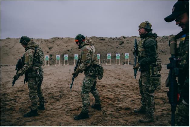 Полигонв тылу, тренировочный лагерь для гражданских лиц и солдат, в основном сосредоточенный на базовой тактической подготовке.Фотограф: Юлия Кочетова/Bloomberg