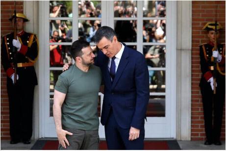 Президент Украины Владимир Зеленский и премьер-министр Испании Педро Санчес в понедельник в Мадриде. Фото…Оскар дель Посо/AgenceFrance–Presse — GettyImages