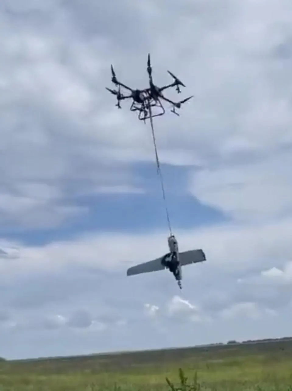 Украинский беспилотник с крюком поднял с земли еще один беспилотник Минобороны Украины