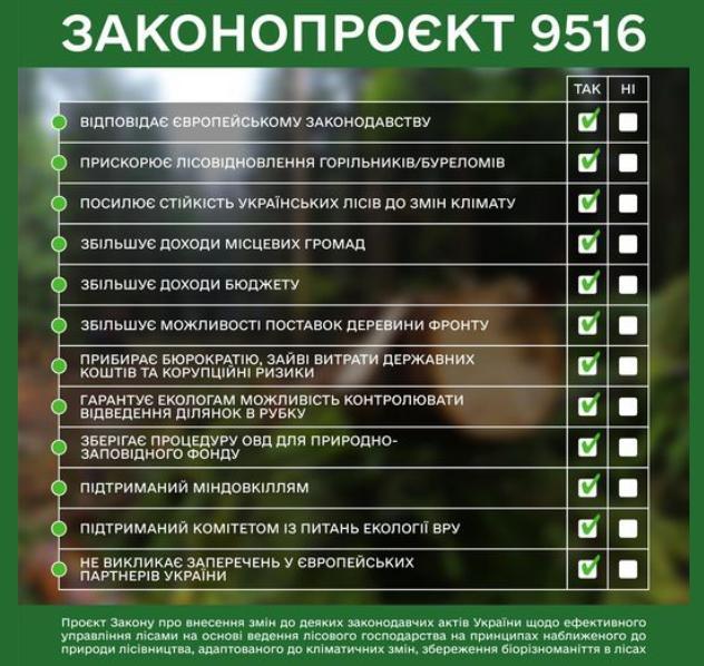 Тож законопроєкт №9516 не суперечить регламенту ЄС щодо боротьби з знелісненням (EUDR).