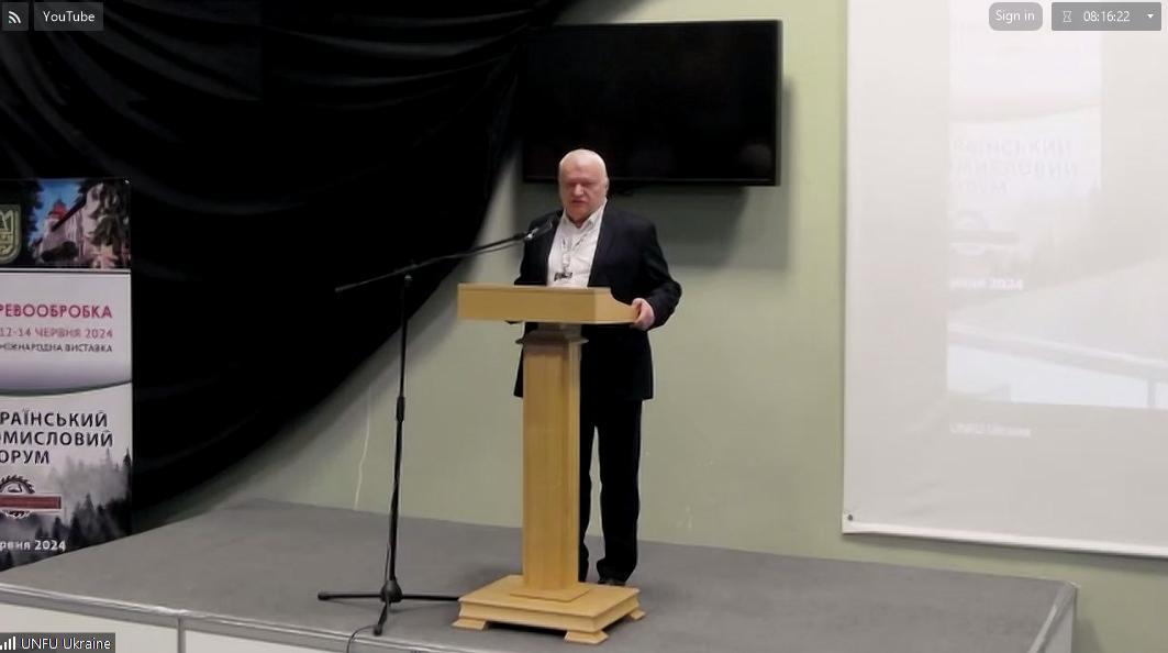 Виступає директор навчально-наукового інституту деревообробних технологій та дизайну НЛТУ України, доктор технічних наук, професор Володимир Маєвський