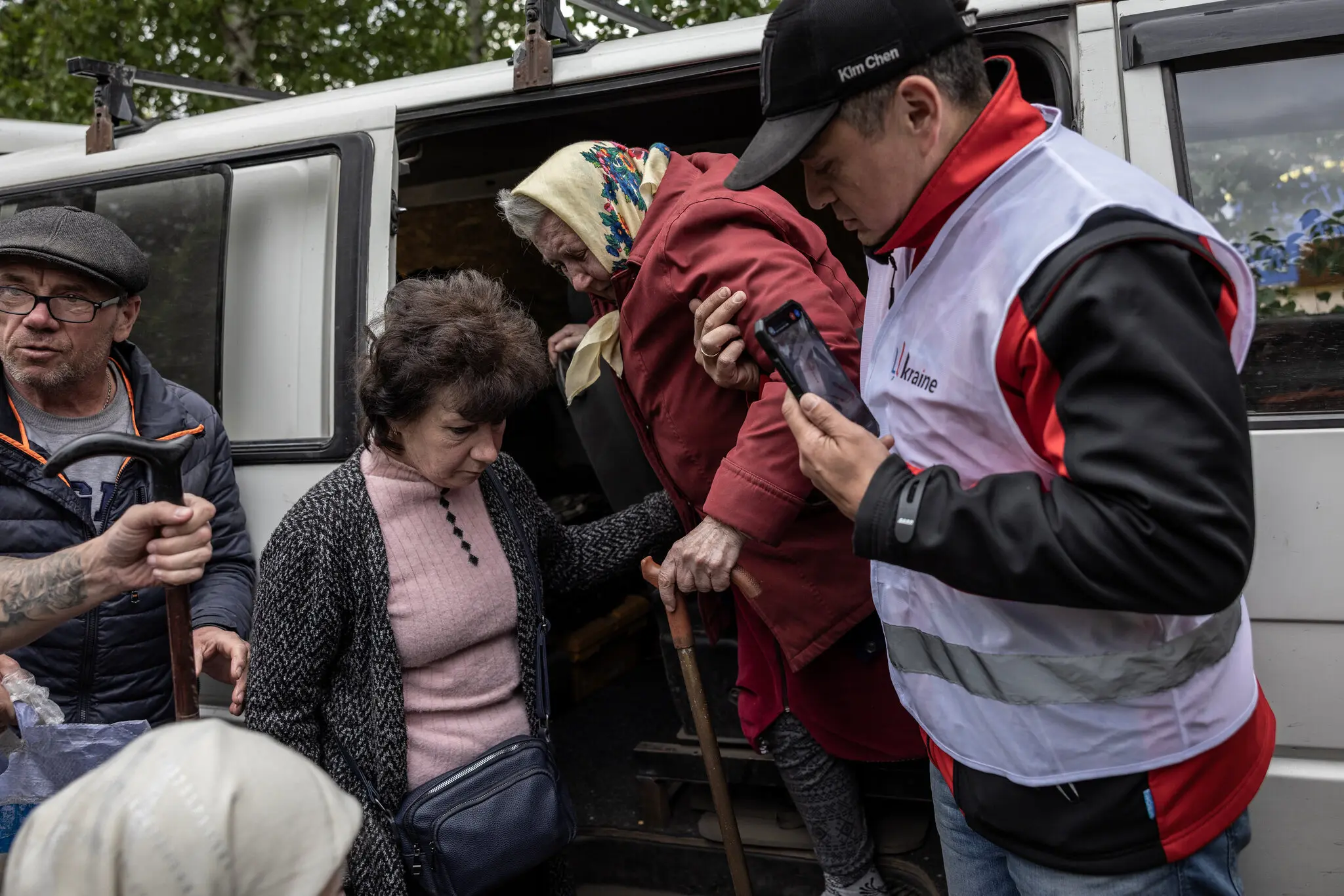 Многие из тех, кто остался, добровольно раздавали гуманитарную помощь тем, кто был менее обеспечен; высокий процент оставшихся жителей составляли пожилые люди. Они часто полагались на горячую еду, поставляемую благотворительной организацией World Central Kitchen.