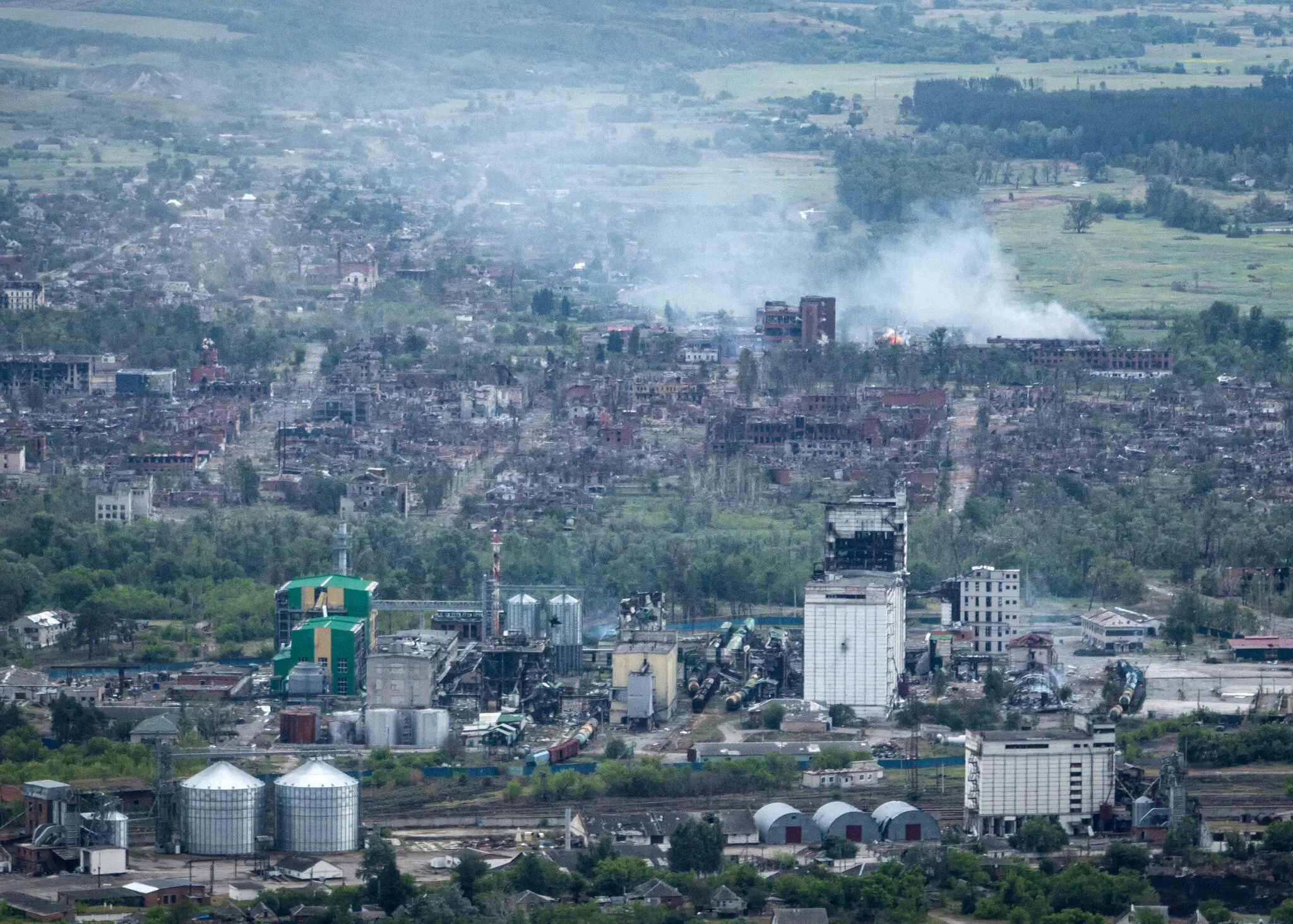 «Мой маленький, мирный городок, полный деревьев и цветов! Он утопал в зелени», — рассказала в интервью на прошлой неделе бывшая жительница Татьяна Полякова. Она рассказала, как лесные пожары выжгли лес, а городские здания повреждены снарядами с черными огненными следами на стенах. Огромные клубы дыма поднимались после каждого удара, окутывая ее дом и остальную часть города.