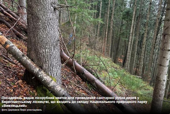 Посадовець видав лісорубний квиток для проведення санітарної рубки дерев у Берегометському лісництві, що входить до складу Національного природного парку «Вижницький»фото Державне бюро розслідувань