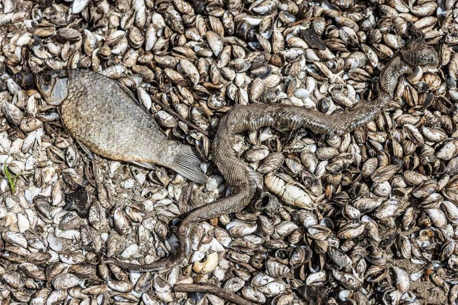 Рыба, пресмыкающиеся и миллионы моллюсков гниют на осушенном дне Каховского водохранилища. FINBARR O’REILLY /THE NEW YORK TIMES /REDUX