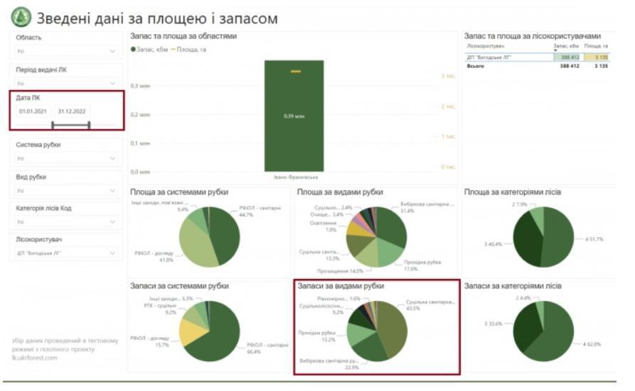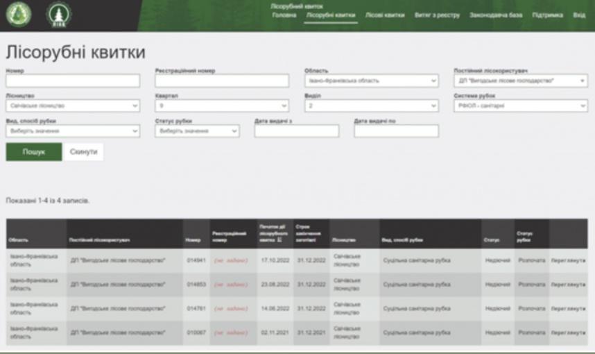 Не змінилася ситуація і у 2022 році, коли лісгосп став філією держпідприємства “Ліси України”. За неповні два роки філії виписали понад 200 лісорубних квитків (дозвільних документів) на проведення суцільних санітарних рубок.