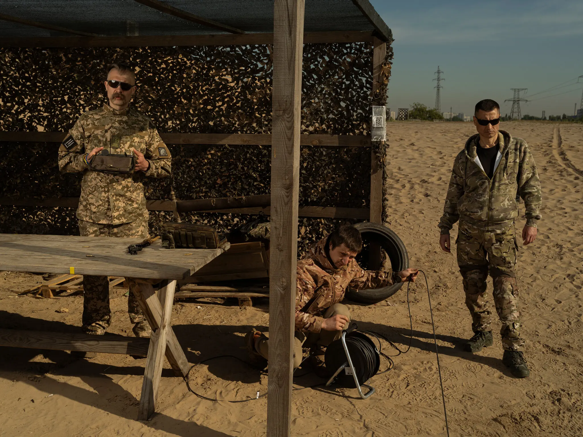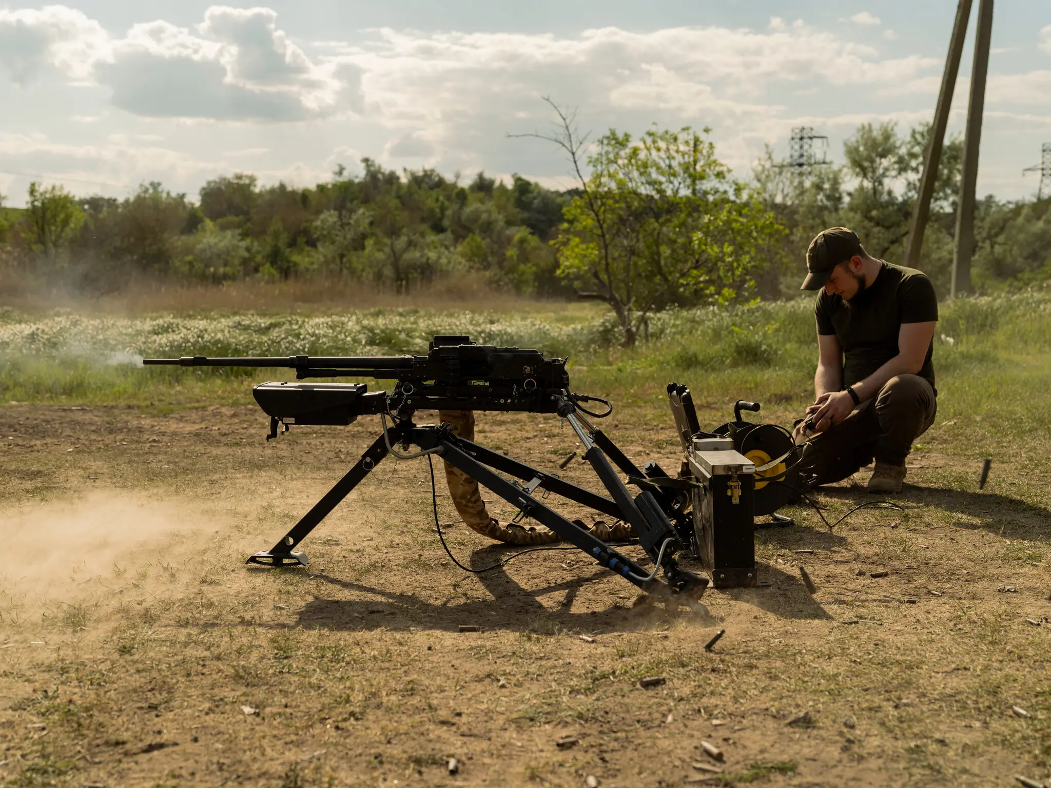 Український батальйон тестує кулемет, який може використати наведення на мету за допомогою штучного інтелекту, на стрільбищі під Києвом. Фото…Відео Саші Маслова для The New York Times та Пола Мозура/The New York Times