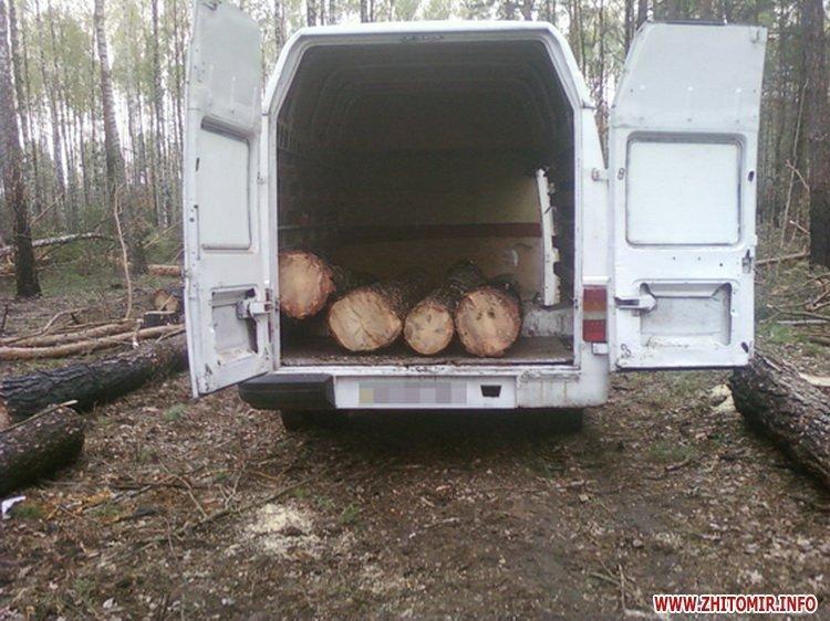 У прес-службі ГУ НП у Житомирській області Житомир.info уточнили, що підпільні лісоруби грузили деревину в автомобіль DAF.